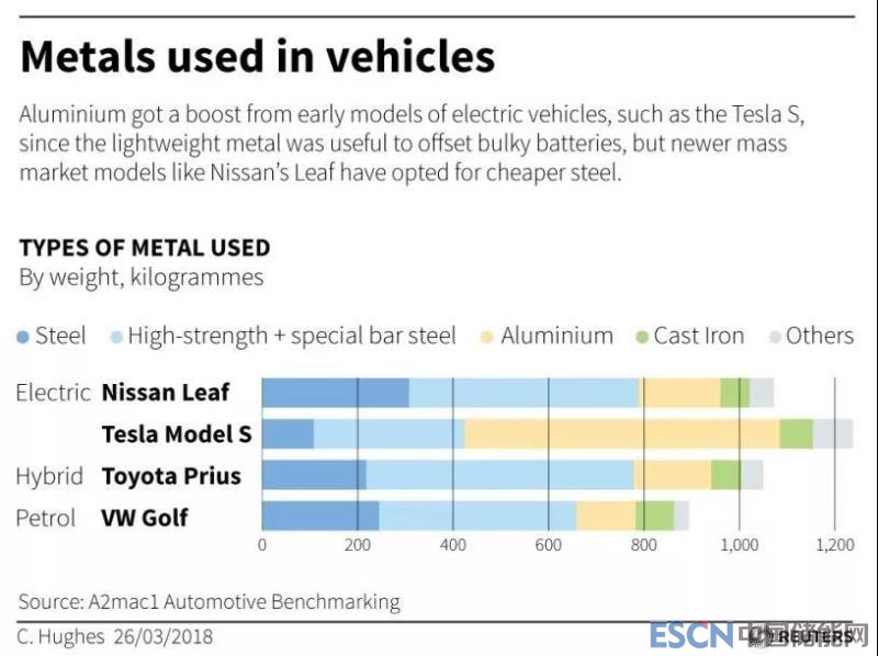 但其他大眾化車型選用材料中分量最高的卻是享有成本優(yōu)勢的高強(qiáng)鋼。例如日產(chǎn)Leaf、大眾高爾夫、豐田普銳斯,它們更傾向于在高強(qiáng)鋼板和異形鋼下功夫。