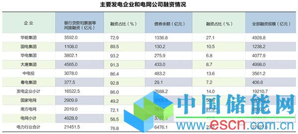 一是國有發(fā)電企業(yè)間接融資明顯高于直接融資。五大央企發(fā)電集團和粵電集團合計,銀行貸款和票據(jù)融資等占86%左右,債券融資只有14%(見下表)。間接融資中,絕大部分來自國有銀行,僅國家開發(fā)銀行就累計發(fā)放電力貸款2萬億元,支持建成水電、火電、核電裝機容量3.84億千瓦,占全國電力裝機容量的1/3。 如果加上另外五大國有商業(yè)銀行,保守估計國有銀行融資也將達80%左右。發(fā)電環(huán)節(jié)間接融資高的主要原因在于,發(fā)電企業(yè)利潤水平?jīng)Q定,融資成本承受能力略高;國有企業(yè)對價格不敏感,加上國有銀行經(jīng)營考核機制決定其貸款更多投向國有企業(yè)。