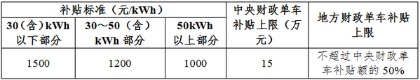 (一)新能源貨車(chē)和專用車(chē)以提供驅(qū)動(dòng)動(dòng)力的動(dòng)力電池總儲(chǔ)電量為依據(jù),采取分段超額累退方式給予補(bǔ)貼,具體如下: