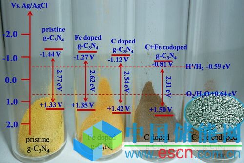 研究人員通過簡單的熱轉(zhuǎn)換方法第一次制備出金屬、非金屬共摻雜的多孔氮化碳可見光催化劑。結(jié)果表明通過這種簡單的共摻雜方法可以有效地調(diào)節(jié)氮化碳的能帶結(jié)構(gòu):更窄的帶隙和更正的價(jià)帶。這一研究結(jié)果一方面有效地?cái)U(kuò)展了光催化的光譜吸收范圍,從而能夠吸收更多的光子;另一方面進(jìn)一步提高了光催化劑的氧化能力,從而達(dá)到有效降解有機(jī)污染物的目的。