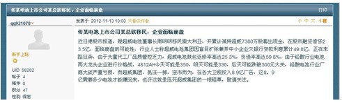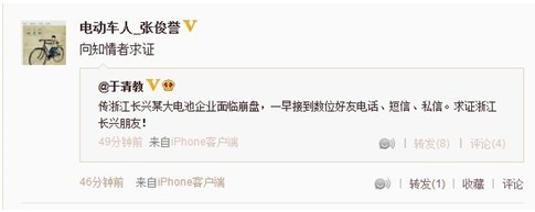 如果說網(wǎng)絡(luò)上捕風(fēng)捉影的信息還可能是巧合造成的謠傳,同樣內(nèi)容的群發(fā)短信就不得不讓人意識到事件的嚴(yán)重性了。從謠言信息的內(nèi)容來看,如此了解鉛酸電池這一冷門行業(yè)情況的必然是業(yè)內(nèi)人士,而將“董事長移民”“出股套現(xiàn)”等個人行為的最終結(jié)果定位為“壓死超威集團(tuán)的一根稻草”,似乎矛頭指向也并非超威董事長本人、并非企業(yè)高層的內(nèi)部爭斗,而更似競爭對手所為。然而以攻擊企業(yè)高層的方式詆毀競爭對手,此舉確實(shí)有些突破下限,有點(diǎn)下三濫。