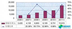 A123系統(tǒng)公司2006年~2011年的營收情況