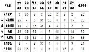 圖表 2 中國鋰離子電池產(chǎn)業(yè)鏈各環(huán)節(jié)投資價(jià)值綜合評分表