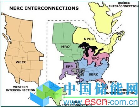 中國儲能網(wǎng)訊:北美聯(lián)合電網(wǎng)由美國東部電網(wǎng)、西部電網(wǎng)、德州電網(wǎng)和加拿大魁北克電網(wǎng)四個同步電網(wǎng)組成,覆蓋美國、加拿大和墨西哥境內(nèi)的下加利福尼亞州。北美聯(lián)合電網(wǎng)區(qū)域分布圖如所示。