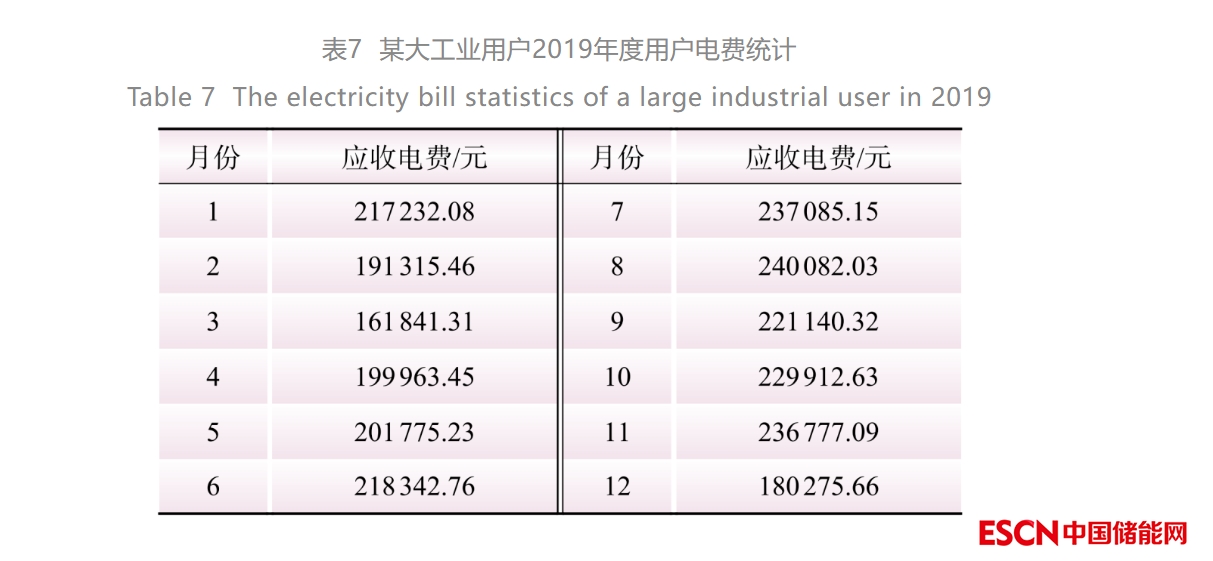 對該用戶2019年上繳電費整理分析,該用戶在每年7月和8月為用電高峰期,如表7所示。為更好地反應(yīng)儲能用戶參與輔助服務(wù)的經(jīng)濟效益,選取8月份實際用電數(shù)據(jù)與模型配置結(jié)果進行經(jīng)濟性分析。