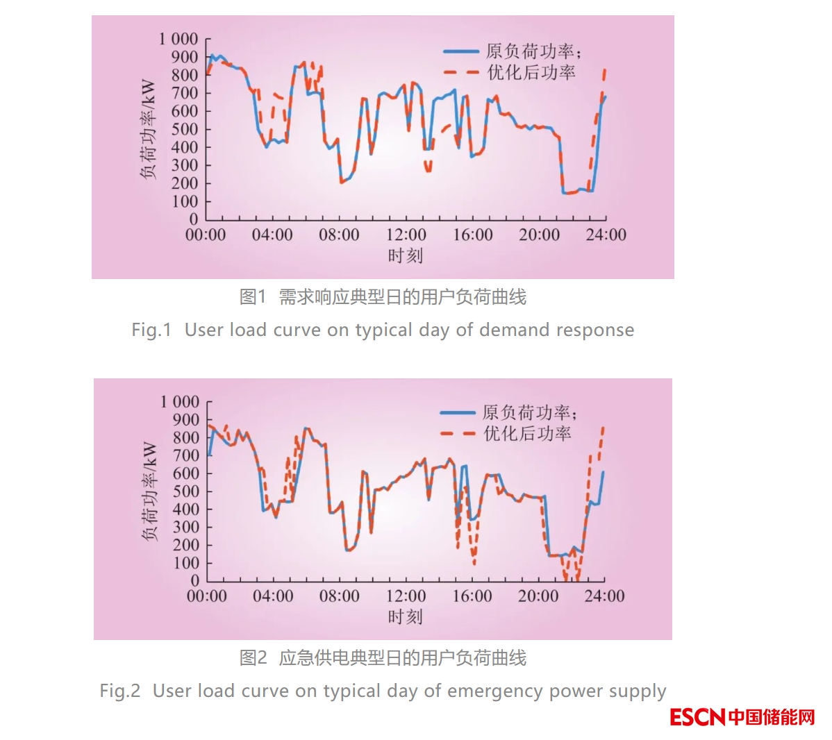 需求響應(yīng)典型日和應(yīng)急供電典型日的用戶負荷功率曲線分別如圖1和圖2所示。由圖1可知,儲能在00:00—01:00時段削減了原負荷曲線的峰值;在03:00—06:00和23:00—00:00時段內(nèi)儲能充電。特別地,在設(shè)置的13:00—15:00需求響應(yīng)時段內(nèi),儲能進行放電,減少了用戶從電網(wǎng)中汲取能量。其中,用戶最大負荷量減少201.6 kW,這與需求響應(yīng)參數(shù)配置結(jié)果相吻合。在需求響應(yīng)典型日中儲能參與了峰谷套利、需量管理和需求側(cè)響應(yīng)3種輔助服務(wù)。由圖2可知,用戶參與了峰谷套利、需量管理和應(yīng)急供電3種輔助服務(wù)。在設(shè)置的15:00—16:00應(yīng)急供電時段內(nèi),儲能設(shè)備供能,負荷曲線降低了所上報的功率值118.125 kW。