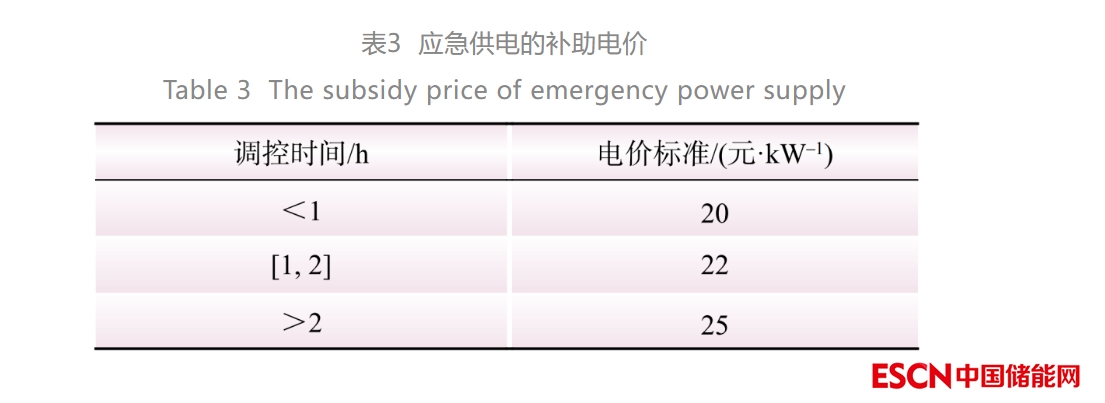 表3為根據(jù)江蘇省發(fā)布的電力需求響應(yīng)實施細則[25]所設(shè)定的應(yīng)急供電的補助電價。