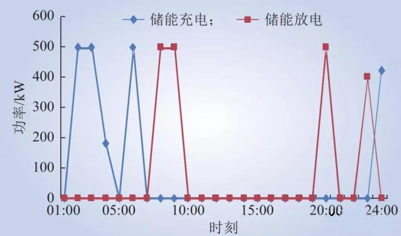 儲能單元在配電網(wǎng)的谷時(shí)電價(jià)時(shí)段進(jìn)行充電,在其余時(shí)段均進(jìn)行放電的運(yùn)行方式,以此減少微電網(wǎng)從配網(wǎng)的購電量。