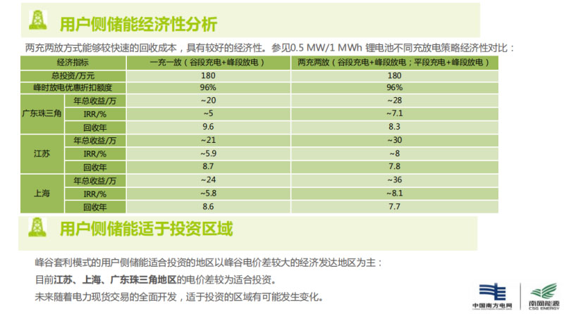 分析來看,我們基本上以珠三角江蘇、上海這些地區(qū),這也是目前可能出現(xiàn)盈利的一些地區(qū),目前單價(jià)基本上1塊8,我們基本上按照鋰離子來算的,1塊8/瓦時(shí),目前的收益大概是7%—8%之間,可能我們自己的模型相對(duì)保守一點(diǎn),現(xiàn)在相當(dāng)于我用戶側(cè)儲(chǔ)能可以規(guī)?;瘧?yīng)用,但是又沒辦法爆發(fā),出在這個(gè)臨界點(diǎn),一旦這個(gè)成本再往下降一點(diǎn),基本上用戶側(cè)儲(chǔ)能可以大規(guī)模爆發(fā),有很多投資公司會(huì)經(jīng)常進(jìn)行投資。