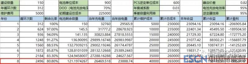 表: 某企業(yè)電池儲能系統(tǒng)投資收益測算