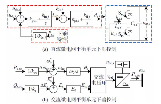 交直流微電網(wǎng)內(nèi)平衡單元采用下垂控制,其中圖2所示為一類常用的下垂控制具體實現(xiàn)。