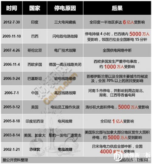 大停電造成的災(zāi)難顯而易見,但全球范圍內(nèi)的大停電事件卻屢見不鮮。2012年7月30、31日印度大停電,6.7億人口在黑暗中度過了兩天,占到了全世界人口的十分之一,起因只是印度北部電網(wǎng)一回400千伏交流輸電線路故障跳閘。