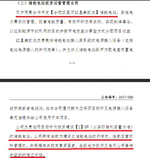 公告顯示,國電能源將按照合同約定的方式,就紅星美凱龍智能微電網(wǎng)項目中的四項節(jié)能項目,以建設(shè)分布式光伏電站、安裝充電樁、建設(shè)儲能電站、簽訂售電協(xié)議的順序分部實施。本協(xié)議包含《合同能源管理協(xié)議》、《儲能電站投資運營管理合同》、《充電樁安裝運營協(xié)議》、《電力交易(售電)協(xié)議書》四個部分。