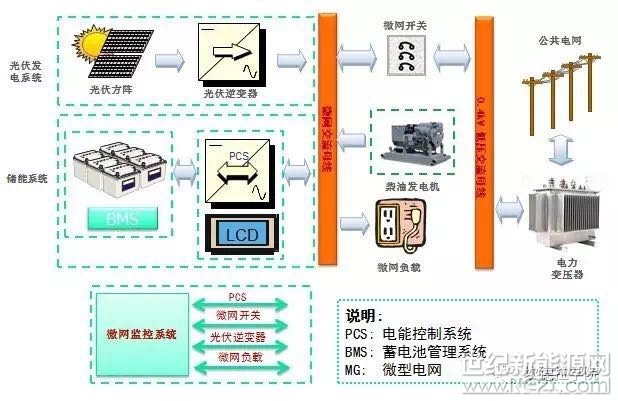 下圖是以光伏系統(tǒng)和柴油機為主的分布式能源微電網(wǎng)的結構和組成: