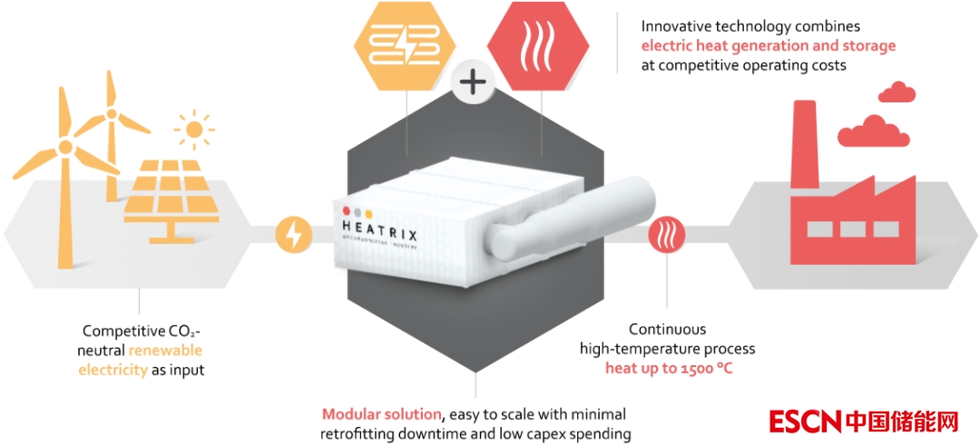 德國Heatrix公司的高溫儲(chǔ)熱技術(shù)可存儲(chǔ)高達(dá)1500攝氏度的溫度,該公司認(rèn)為,工業(yè)領(lǐng)域的高溫?zé)崮芟呐欧帕舜罅慷趸?,利用其?chǔ)熱技術(shù)可以實(shí)現(xiàn)完全的清潔替代。