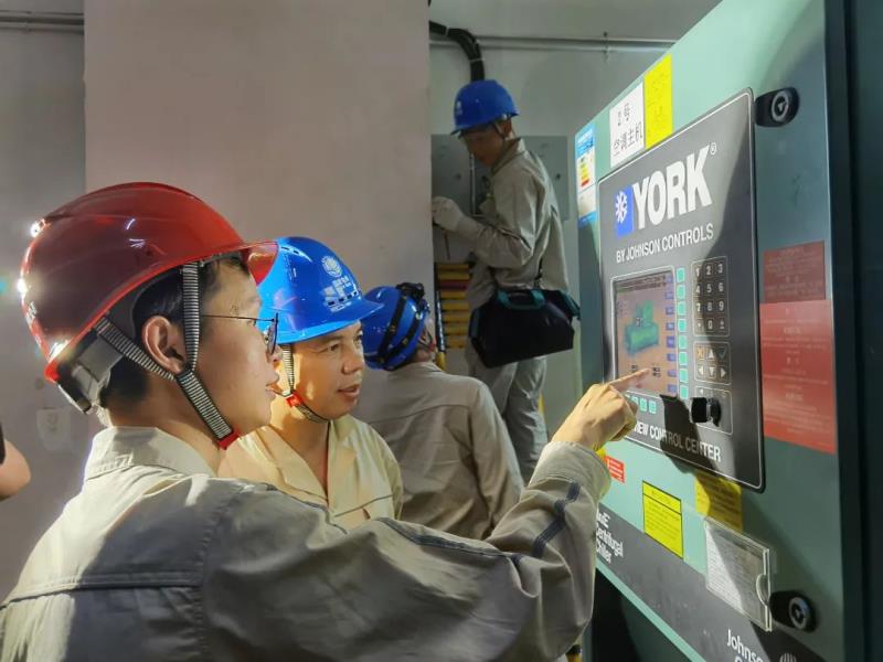電網(wǎng)員工正在現(xiàn)場(chǎng)安裝中央空調(diào)智能化管理設(shè)備