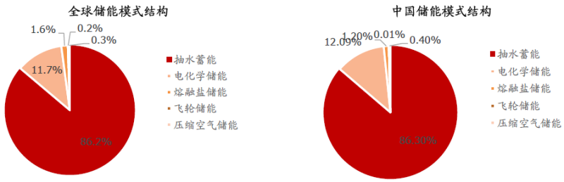 在2021年的全球儲能市場中,抽水蓄能累計裝機占比86.2%,電化學儲能累計裝機規(guī)模占比第二,約11.7%,熔鹽儲能的累計裝機規(guī)模排名第三,占比1.6%。