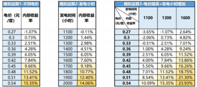 2021年電化學儲能系統(tǒng)成本約1.5元/Wh左右,是儲能經(jīng)濟性的拐點,大電站配儲在某些地區(qū)具備較強的經(jīng)濟性。假設光伏電站100MW的運營規(guī)模,配儲20%*2h,循環(huán)次數(shù)為7000次,每天充放電一次,按照配儲后電站4.5元/W的綜合成本計算:一類地區(qū)發(fā)電小時1100h,上網(wǎng)電價為0.51元/kWh,具備經(jīng)濟性;二類地區(qū)發(fā)電小時為1300h,上網(wǎng)電價為0.42元/kWh,具備經(jīng)濟性;三類地區(qū)發(fā)電小時為1600h,上網(wǎng)電價為0.36元/kWh,具備經(jīng)濟性。