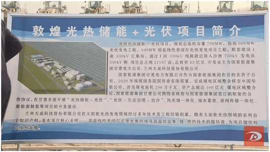 中國(guó)儲(chǔ)能網(wǎng)訊:4月14日,國(guó)家能源集團(tuán)龍?jiān)措娏Ω拭C公司成功備案敦煌700MW“光熱儲(chǔ)能+光伏”一體化綜合能源示范項(xiàng)目。