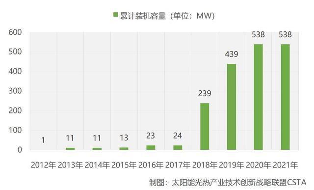 2021年底我國太陽能熱發(fā)電累計裝機(jī)容量