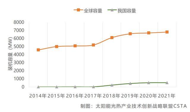 2014-2021年全球太陽能熱發(fā)電累計裝機(jī)容量發(fā)展情況