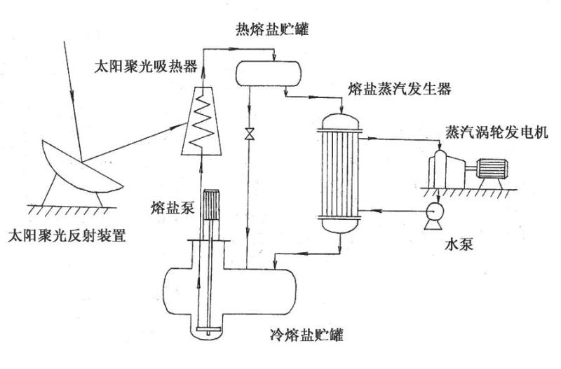 熔鹽是指熔融態(tài)下的液體鹽,工程中使用的熔鹽通常指無機鹽熔融體。熔鹽具有高沸點、低粘度、低蒸汽壓力和高體積熱的特點,是一種優(yōu)良的傳熱儲熱介質(zhì)。熔鹽儲能技術(shù)即利用熔鹽在升溫和降溫過程中的溫差實現(xiàn)熱能存儲。