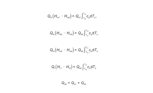 其中,Q為流量,kg/s;p為壓力,MPa;T為溫度,℃;下標(biāo)m表示主蒸汽;r表示再熱蒸汽;s表示熔鹽。主要熱質(zhì)平衡計(jì)算式如下