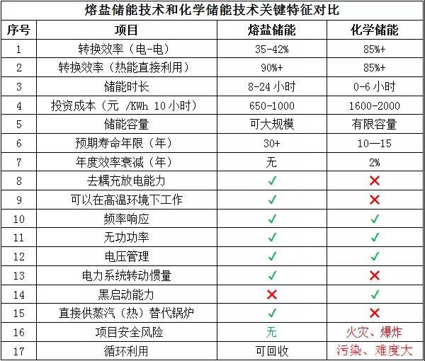 表1熔鹽儲(chǔ)能技術(shù)和化學(xué)儲(chǔ)能技術(shù)特征對(duì)比