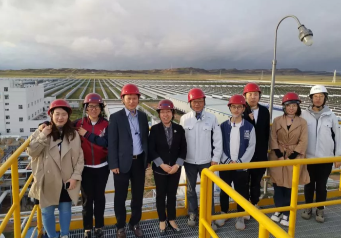 交流期間,何雅玲一行實(shí)地察看了項(xiàng)目鏡場(chǎng)、導(dǎo)熱油主泵、熔鹽儲(chǔ)罐、SGS、主廠房等區(qū)域,聽(tīng)取了中國(guó)船舶集團(tuán)光熱產(chǎn)業(yè)發(fā)展建設(shè)情況介紹。何雅玲院士指出,中船新能在光熱儲(chǔ)能方向的產(chǎn)業(yè)布局與西安交通大學(xué)能源與動(dòng)力工程學(xué)院的各個(gè)細(xì)分方向非常匹配,在研發(fā)方面可開(kāi)展多項(xiàng)合作,高校和企業(yè)資源互補(bǔ),積極發(fā)揮各自的優(yōu)勢(shì)。