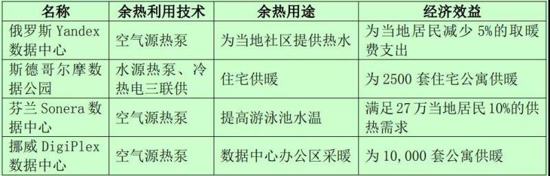 表1 國(guó)外數(shù)據(jù)中心余熱利用典型案例