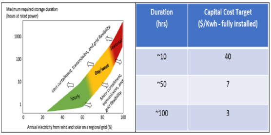 隨著電網(wǎng)上可再生能源發(fā)電的增加,提供電網(wǎng)可靠性所需的持續(xù)放電時間也增加了。電網(wǎng)中的可再生能源發(fā)電量與儲能時間之間的關系很復雜,并且取決于可再生能源發(fā)電的詳細信息。