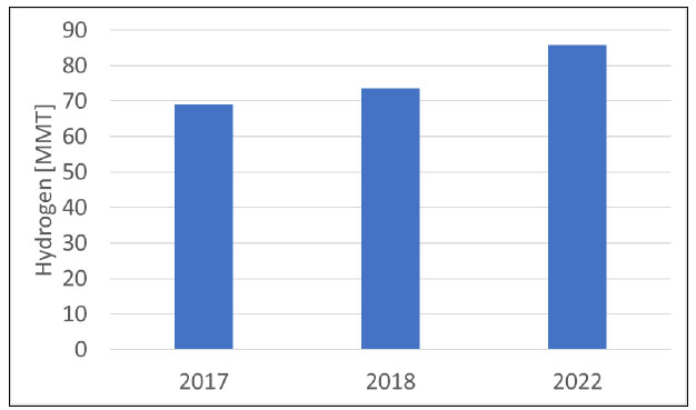 圖44. 全球氫氣消耗量(2017年~2022年)