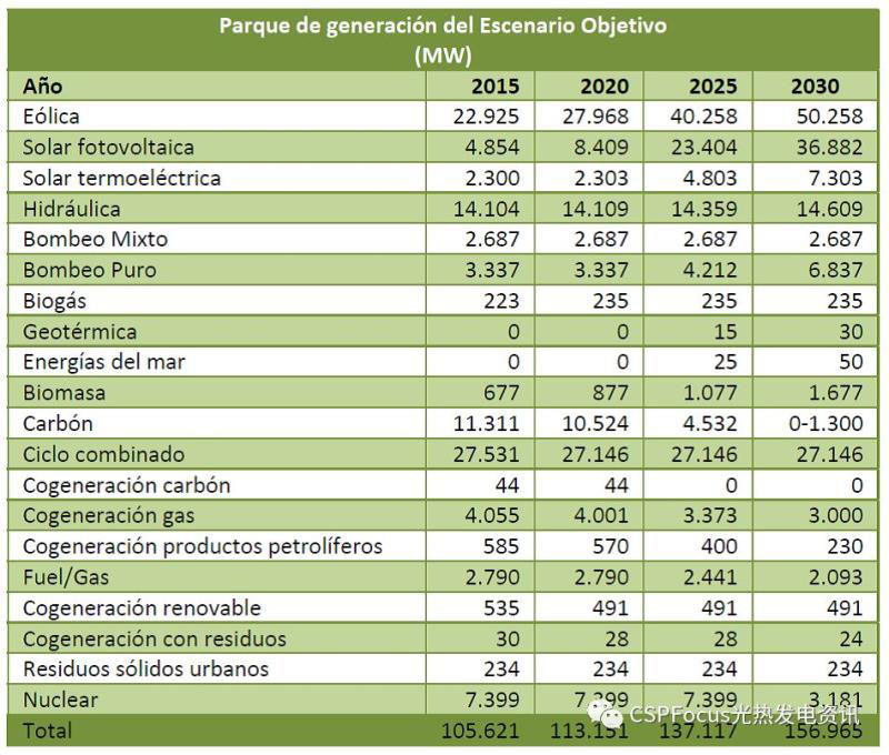 可喜的是,西班牙于去年發(fā)布了最新的國家能源和氣候綜合計劃(PNEC),到2030年可再生能源提供電力將占整體電力供應(yīng)的74%。根據(jù)公開征求意見的提案草案,西班牙計劃到2030年將其風(fēng)電裝機從2015年的22.9GW增加到50.5GW,并將光伏發(fā)電容量從4.9GW增加到36.9GW。同時并希望重新啟動光熱電站的大規(guī)模部署,計劃到2025年西班牙光熱電站總裝機規(guī)模將達到4.8GW,到2030年將達到7.3GW。