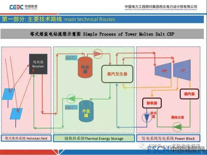 塔式熔鹽電站和之前提到的槽式熔鹽電站從電能輸出特性來講比較優(yōu)秀,比較靈活適應電網側需求,而且與槽式導熱油電站相比,節(jié)省導熱油工藝,整個系統(tǒng)比緊湊。因此具有很強的優(yōu)勢。