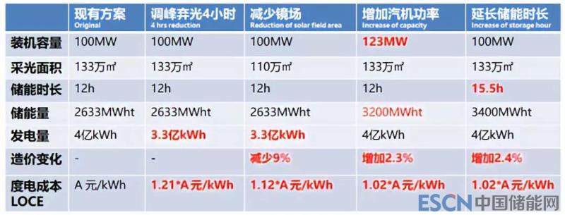 (2)系統(tǒng)優(yōu)化:為適應于調(diào)峰需求,系統(tǒng)設計需調(diào)整:同等采光面積下(同等土地面積),增加儲能時長,或:同等采光面積下,增加汽輪機額定功率。