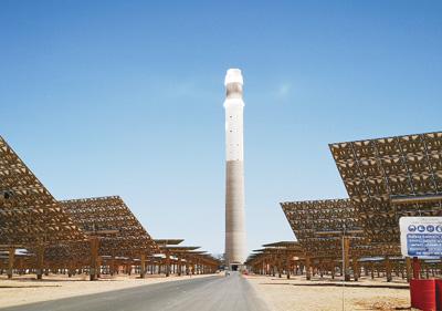 在熱映的電影《紅海行動》中,太陽能電廠的場景拍攝就選址摩洛哥努奧光熱電站,這是該太陽能電廠場區(qū)的三期項(xiàng)目,占地約750公頃,裝機(jī)容量150兆瓦,為目前世界上單機(jī)容量最大的塔式光熱發(fā)電項(xiàng)目,也是“一帶一路”代表工程。吸熱塔總高243米,是目前世界上最高的吸熱塔。