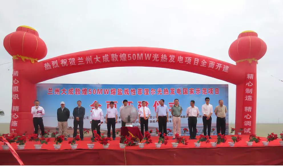 中國(guó)儲(chǔ)能網(wǎng)訊:6月29日上午,由蘭州大成科技股份有限公司投資開(kāi)發(fā)的敦煌50MW熔鹽菲涅爾光熱發(fā)電示范項(xiàng)目在敦煌市光電產(chǎn)業(yè)園區(qū)舉行全面開(kāi)建儀式。