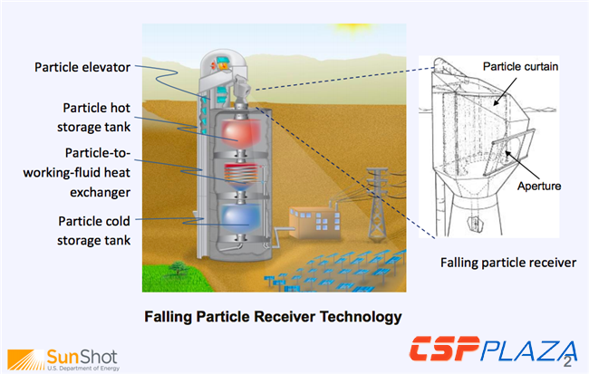 圖:粒子吸熱器技術(shù)原理(來(lái)源:SUNSHOT)