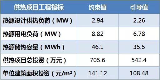 一般來(lái)說(shuō),供暖項(xiàng)目的投資成本取決于采暖建筑的供暖能耗水平,越節(jié)能的建筑需要供暖能耗越少,相應(yīng)配置的供熱容量越小,供暖項(xiàng)目的投資成本和運(yùn)營(yíng)費(fèi)用越低。以北京地區(qū)供熱面積為50000m2的住宅建筑冬季采暖設(shè)計(jì)為例,按照國(guó)家“民用建筑能耗標(biāo)準(zhǔn)(GB/T51161-2016)”的采暖指標(biāo)約束值和引導(dǎo)值,分別估算固體儲(chǔ)熱電供暖項(xiàng)目的投資成本和經(jīng)營(yíng)成本。