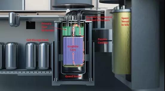 這種類型的高溫熱反應堆不僅僅可生產(chǎn)電力,IMSR核電可以通過液態(tài)鹽向工業(yè)能源區(qū)提供600度的熱量,區(qū)域范圍為5公里,這使得IMSR可以很容易在非用電高峰區(qū)將電力供應切換至非電力供應(熱能),這樣將最大程度的利用IMSR的生成熱,并使的IMSR可以以最有效的方式運行。