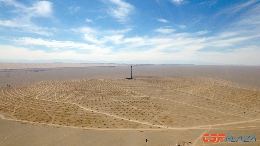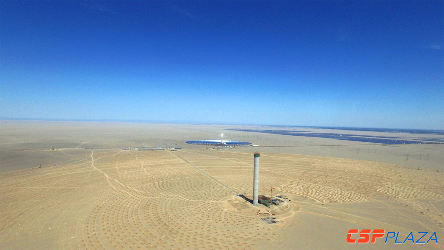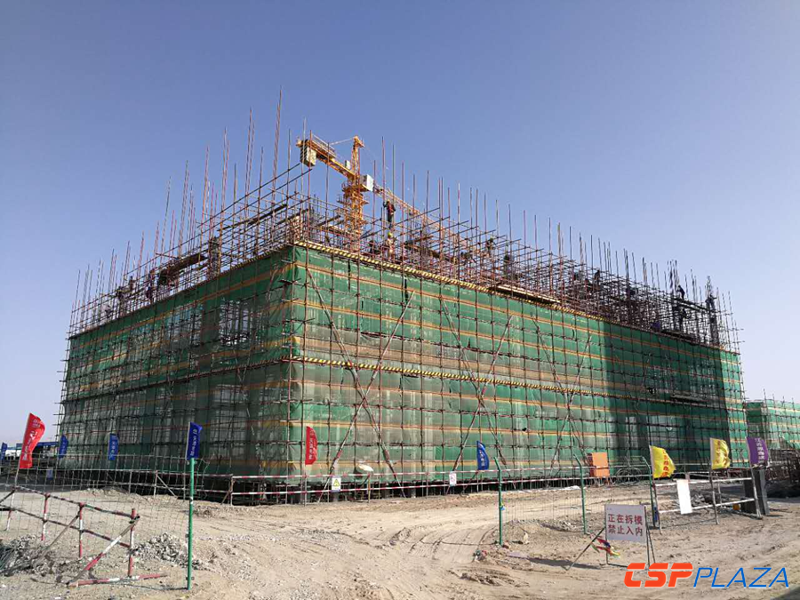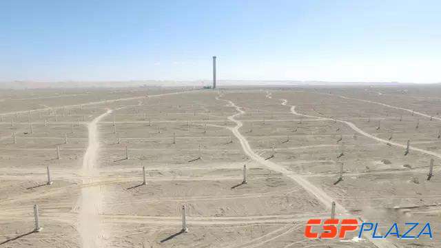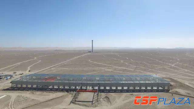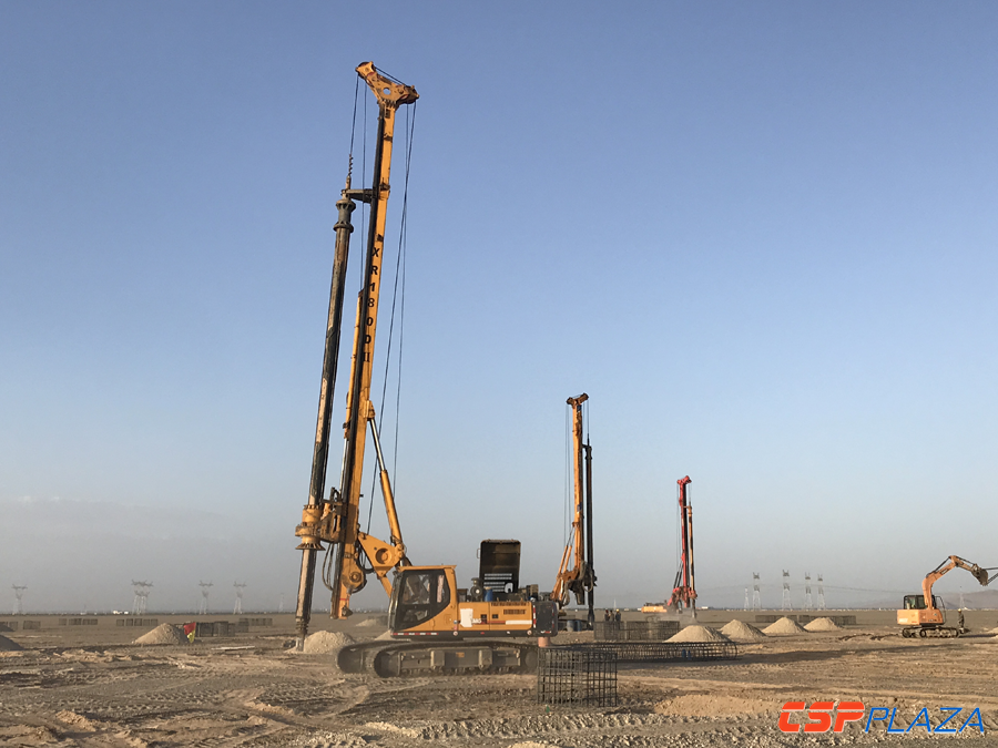 作為首批光熱發(fā)電示范項目的建設基地之一,該電站有全球單機最大的聚光集熱鏡場,共一萬余臺定日鏡。截止目前,已完成定日鏡基礎8000多個,定日鏡立柱開始安裝,且定日鏡組裝車間完成封頂。