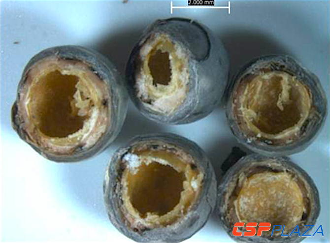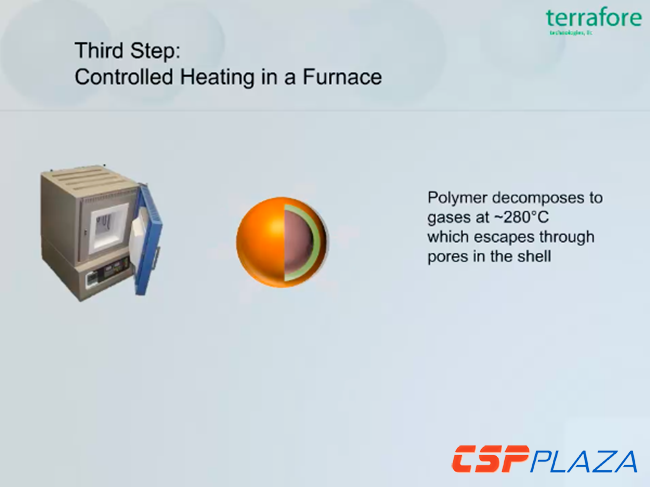 接著加熱膠囊,這時(shí)熔鹽表面附著的聚合物將再次變成氣體并通過氣孔逸出,同時(shí)也使膠囊內(nèi)部留下了一些孔隙,為鹽在加熱和冷卻時(shí)的膨脹和收縮創(chuàng)造空間條件。最后再將一種特殊的涂層附著在膠囊表面以密封氣孔并使其牢固?!驹敿?xì)過程見下列組圖】