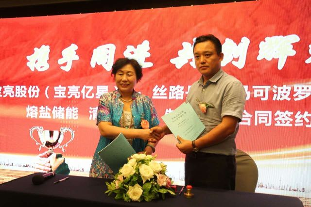 中國儲能網(wǎng)訊:7月4日下午,馬可波羅夢幻城綠色熔鹽供熱制冷項目簽約儀式在呼和浩特市香格里拉酒店盛大舉行。簽約儀式上,內(nèi)蒙古寶亮信息技術(shù)股份有限公司的子公司——內(nèi)蒙古寶亮億星新能源有限公司和張掖絲路丹霞文化發(fā)展有限公司就馬可波羅夢幻城綠色熔鹽供熱制冷項目合同進行了簽約。
