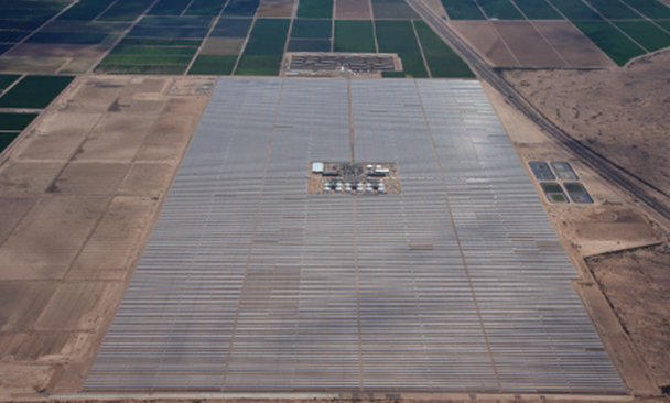 全球最大的槽式電站是美國裝機(jī)280MW的Solana光熱電站,于2013年10月正式投運(yùn),該電站配裝兩個(gè)各140MW的汽輪發(fā)電機(jī)組,該電站位于亞利桑那州鳳凰城西南70英里的GilaBend附近,年發(fā)電量高達(dá)9.44億度,可滿足7萬家庭的日常用電需求。