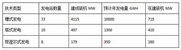 各種太陽(yáng)能熱發(fā)電技術(shù)裝機(jī)容量和發(fā)電量統(tǒng)計(jì)(粗略統(tǒng)計(jì),截至2016年2月)