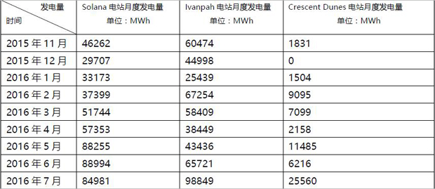 原標題:美國三大光熱電站近9個月的發(fā)電表現(xiàn)對比