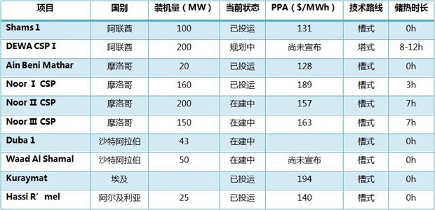 圖:中東及北非(MENA)光熱發(fā)電項(xiàng)目統(tǒng)計