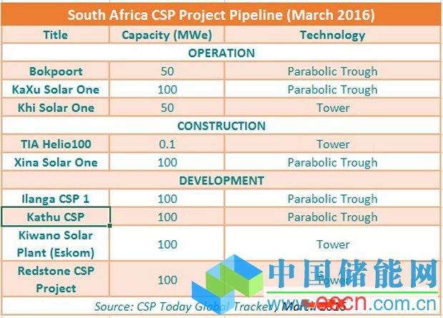 圖:南非已投運(yùn)、處于建設(shè)及開(kāi)發(fā)過(guò)程中的光熱發(fā)電項(xiàng)目統(tǒng)計(jì)(來(lái)自CSP Today)