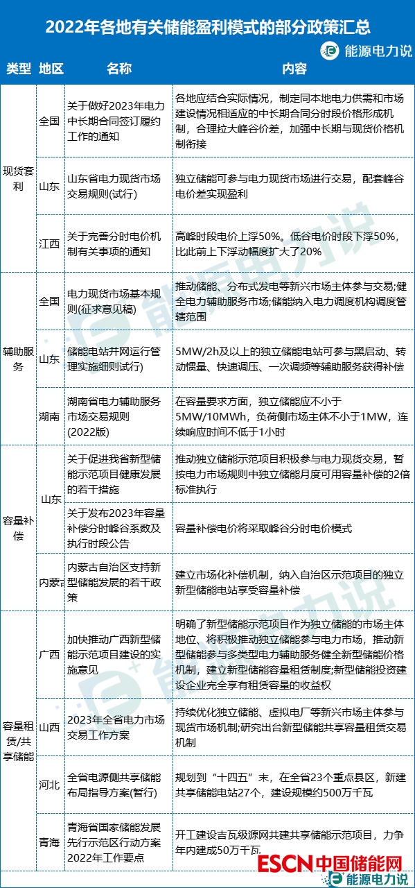 儲能產(chǎn)業(yè)的商業(yè)模式正逐漸清晰,獨立儲能成為未來大型儲能項目的主要發(fā)展方向。當(dāng)前,獨立儲能的盈利模式主要有現(xiàn)貨套利、輔助服務(wù)、容量補償和容量租賃四個方面。隨著國家及地方政策的落地,獨立儲能項目中標(biāo)容量逐年增加,預(yù)計未來獨立儲能項目在市場份額上將占據(jù)更大的比例。