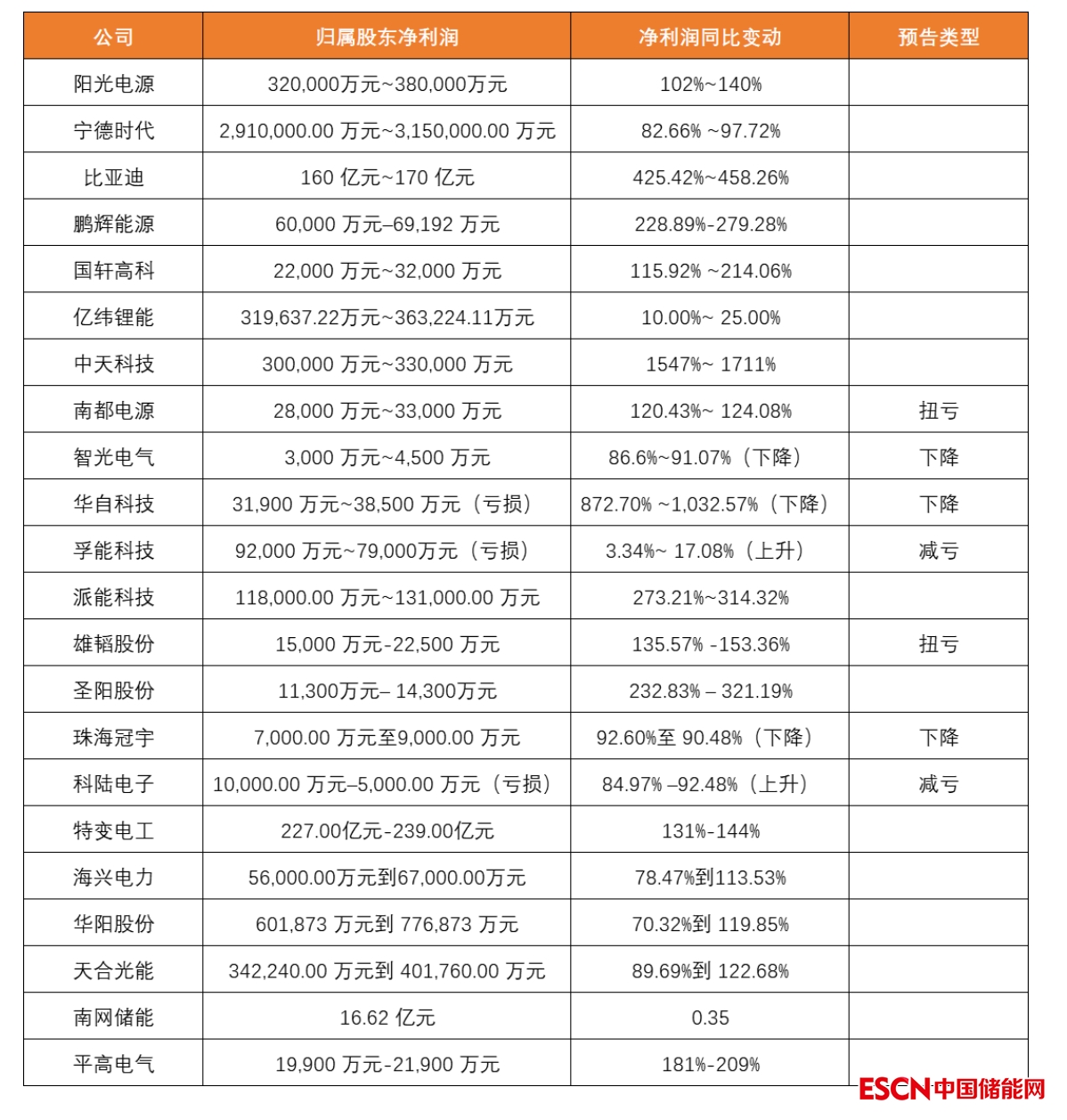 從中下游電池企業(yè)和集成企業(yè)業(yè)績(jī)預(yù)告來(lái)看,儲(chǔ)能企業(yè)凈利潤(rùn)以預(yù)增為主,少數(shù)企業(yè)出現(xiàn)凈利潤(rùn)下降甚至是虧損的情況。